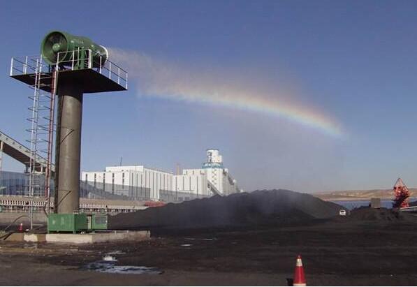 2、對容易引起塵埃的堆場噴水除塵時,噴出的霧粒細小、與飄起的塵埃接觸時,形成一種潮濕霧狀體,能快速將塵埃抑制降沉;